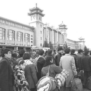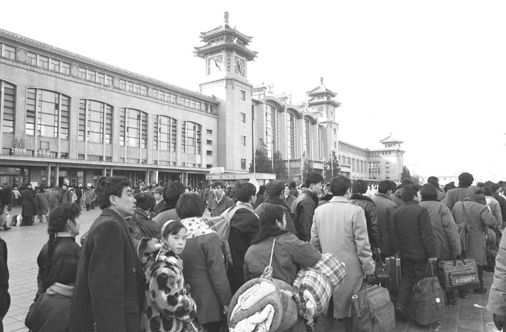 1994年1月30日,北京火车站春运工作进入第二个高峰,当日从北京站上车的旅客约有11万人。这是大批在京务工人员在站前广场排队等候上车。