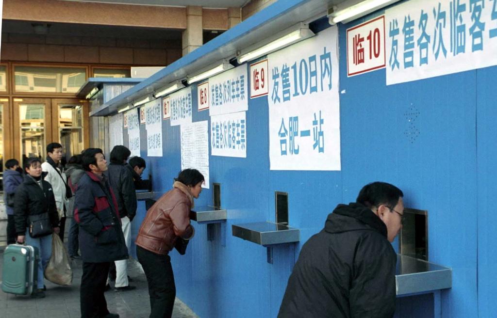 2002年1月28日是2002年全国春运第一天。北京站在站前广场增设临时售票窗口,方便旅客购票。