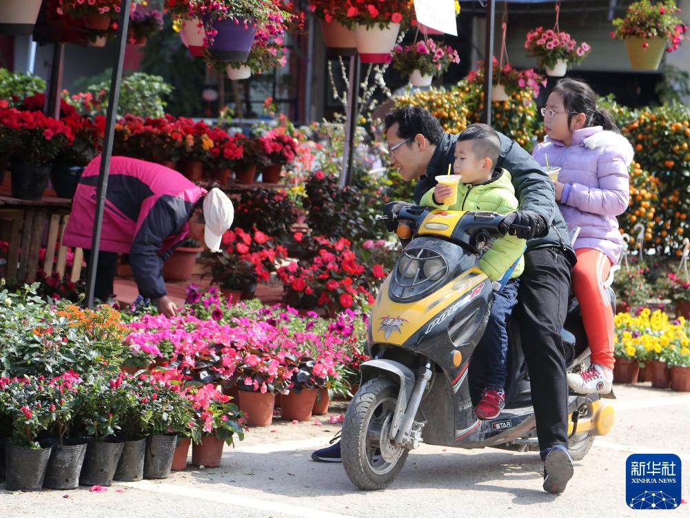 2018年春节前,市民在广西南宁市花鸟市场挑选花卉。 新华社记者 周华 摄