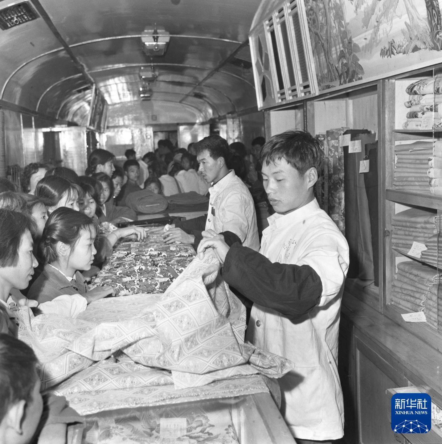 1980年春节前夕,云南昆明铁路局开行一列为边远山区铁路沿线群众服务的“列车商店”,供应日用百货和食品,以方便人们购买年货。新华社记者 兰芳 摄