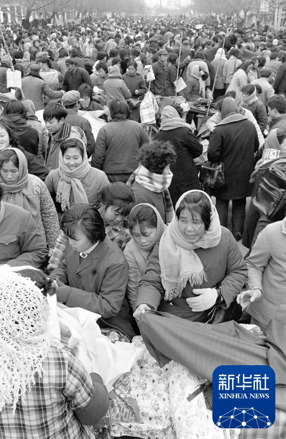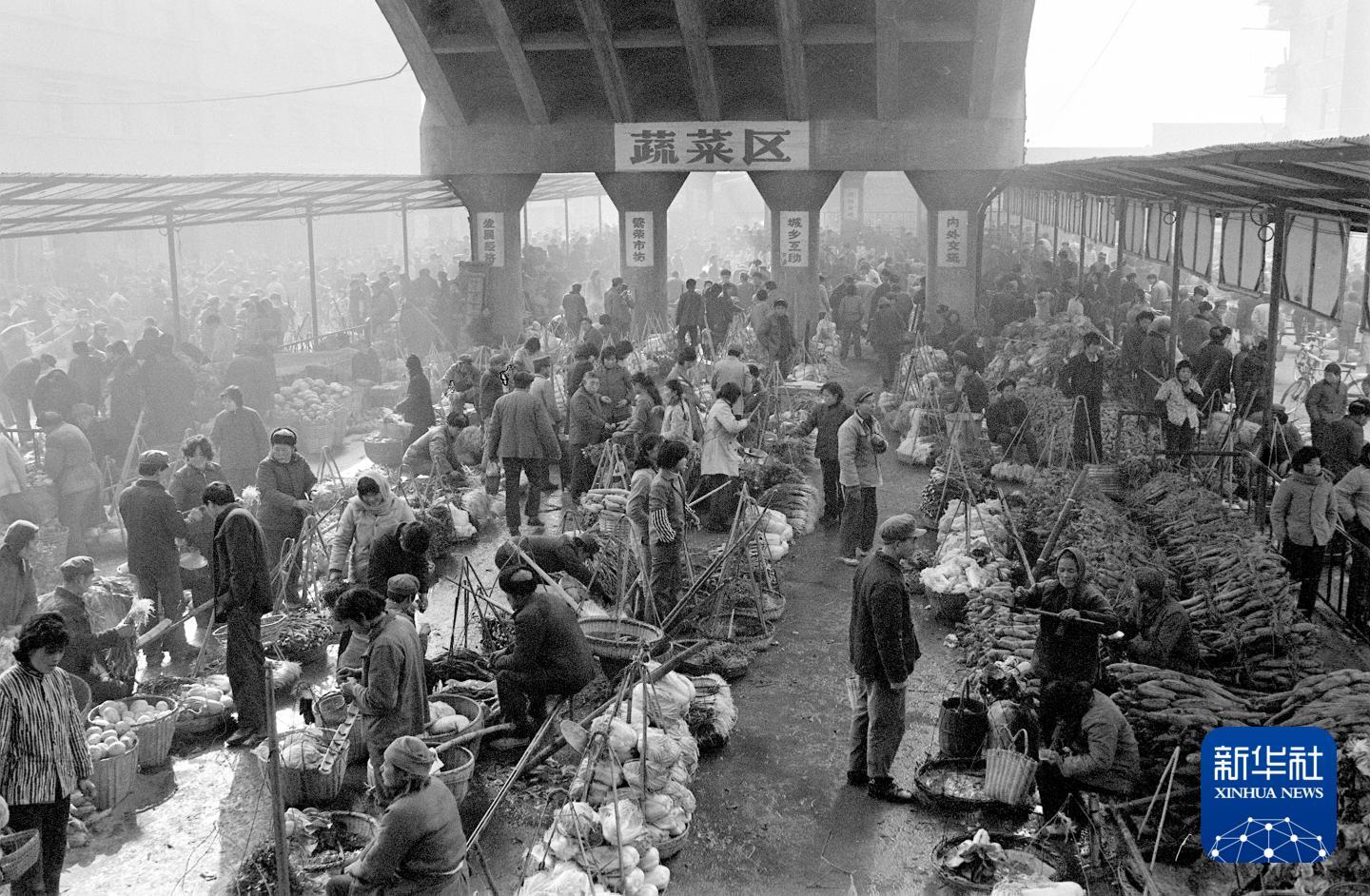 1985年春节前夕,人们在湖南省益阳市大桥农贸市场采购年货。新华社记者 宁光前 摄