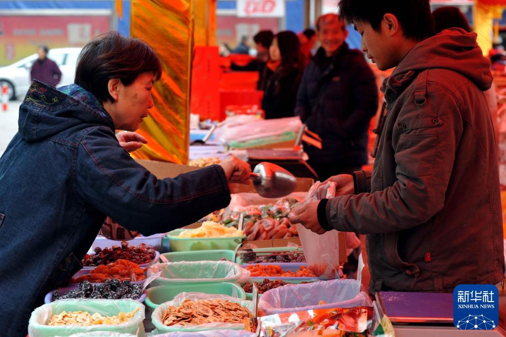 2014年1月12日,市民们在北京石景山区的一个市场内选购年货。新华社记者 李欣 摄