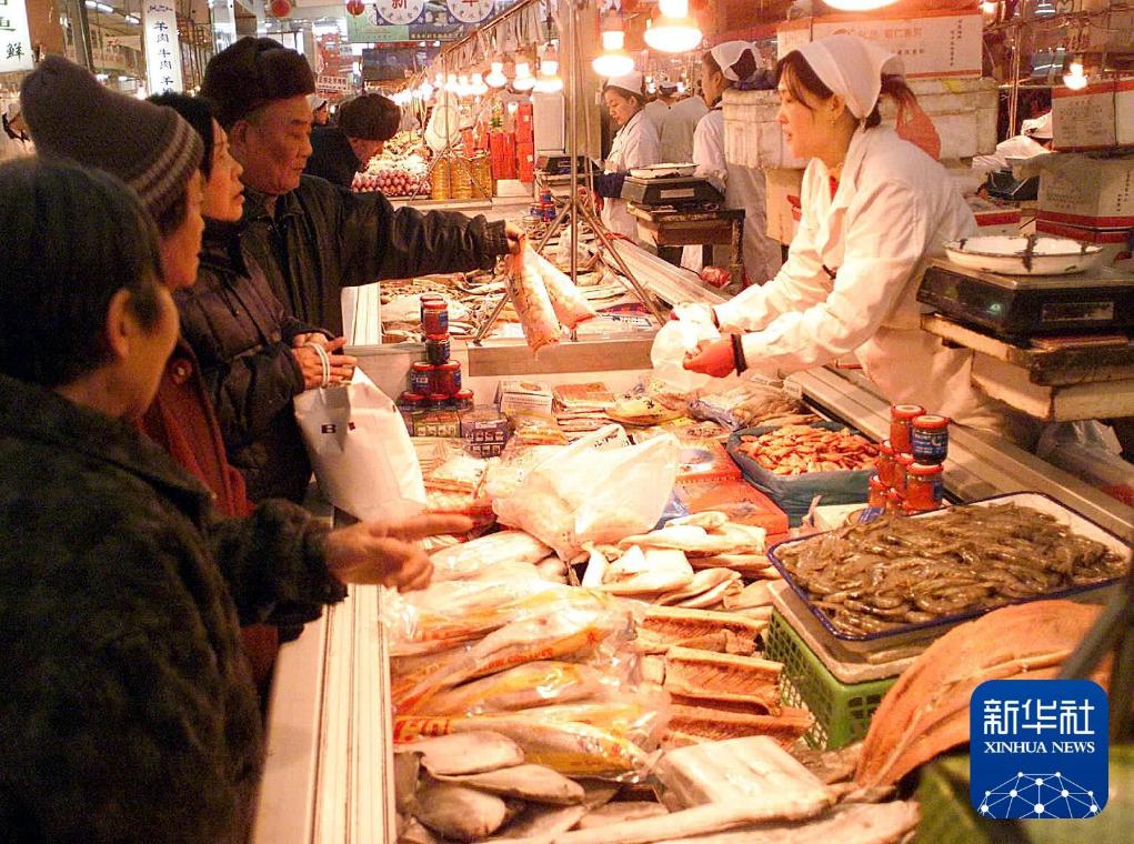 2002年春节前夕,市民在黑龙江哈尔滨一家商店里选购水产品。新华社记者 周确 摄