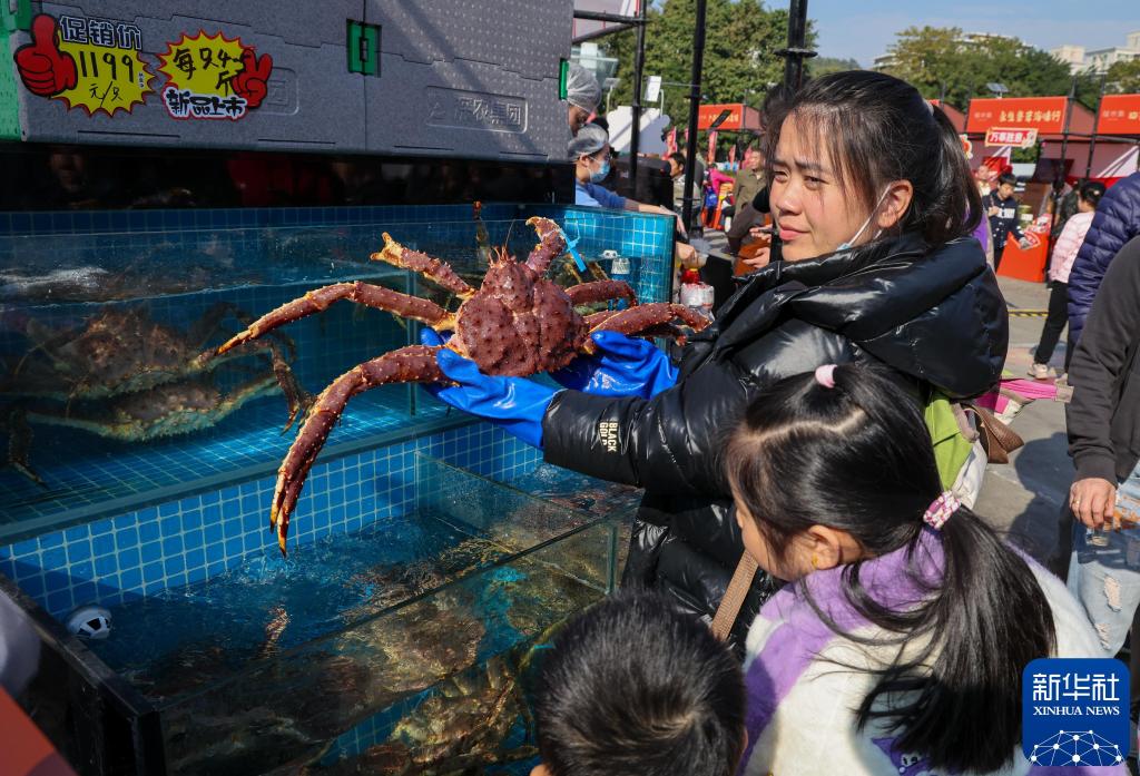 2025年1月11日,在广东深圳福田农批市场,市民在“福市集”年货嘉年华上挑选帝王蟹。新华社记者 毛思倩 摄