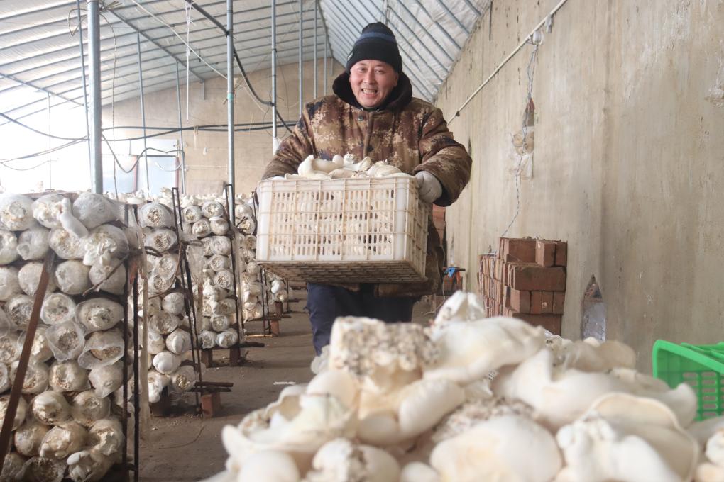 春节前后正是销售高峰,一筐筐的白灵菇被送到工人手上。基部切下用于制作蘑菇酱,肥厚的菌盖等部分则打包装箱,通过冷链发往终端销售。徐宏伟告诉记者,改换品种并优化种植技术后,一个棚最高能实现盈利十几万元。
