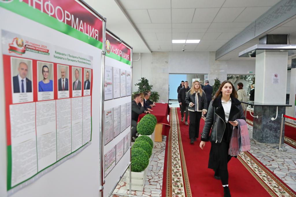 1月26日,选民在白俄罗斯首都明斯克的一处投票站准备参加总统选举投票。新华社发(任科夫摄)