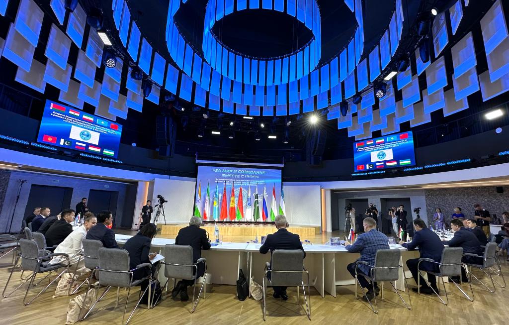 这是2024年7月12日在白俄罗斯维捷布斯克拍摄的上海合作组织成员国文化部长会议现场(手机照片)。新华社记者鲁金博摄