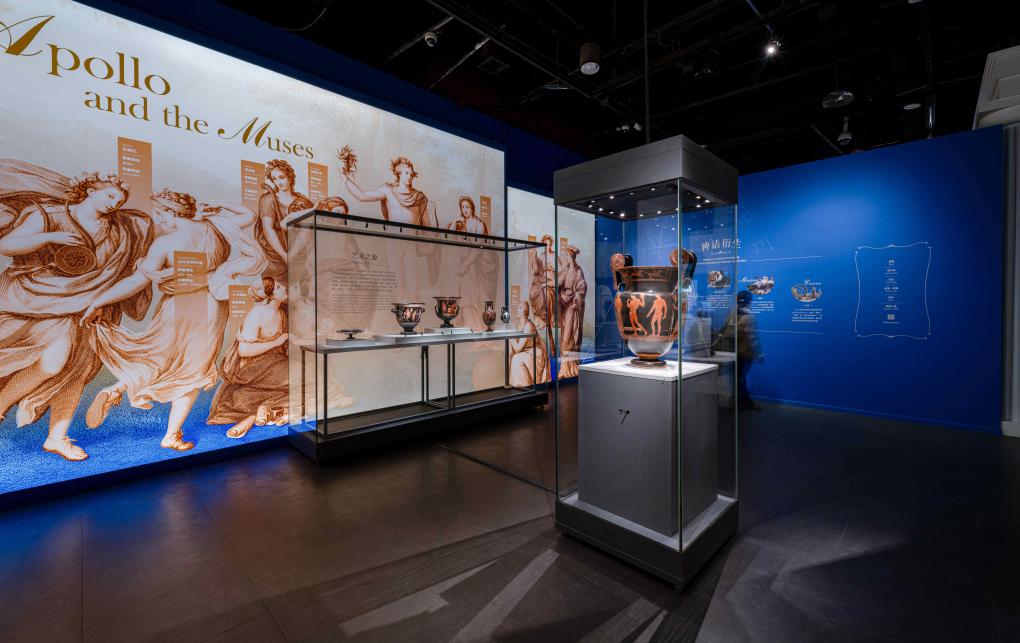 遗址公园的陈列馆内,巨大的弧形墙面上投射下“太阳神鸟”跳动的金色光影。光影下的展厅里,不仅陈列着太阳神鸟金饰等金沙遗址出土的众多珍贵文物,还邀请到古希腊“朋友”来到古蜀遗址,雕塑、彩陶、钱币、青铜器、玻璃器等来自意大利的119件(套)代表性展品,生动阐释古希腊人的日常生活、艺术成就和精神信仰。