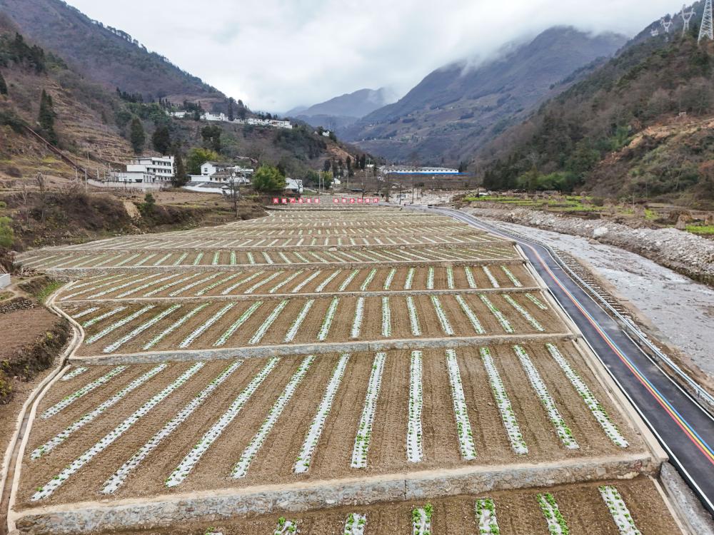 1月25日,灾后重建的粮食和经济作物种植基地已种上青菜和当归。新华社记者 李力可 摄