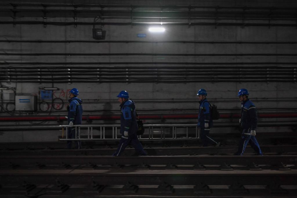 26日凌晨1时5分,在与车控室完成“清车”“停电”两项工作对接并得到调度同意后,4人小组每人背着20多斤重的工具包,抬着5米长的梯子,下到地铁隧道。