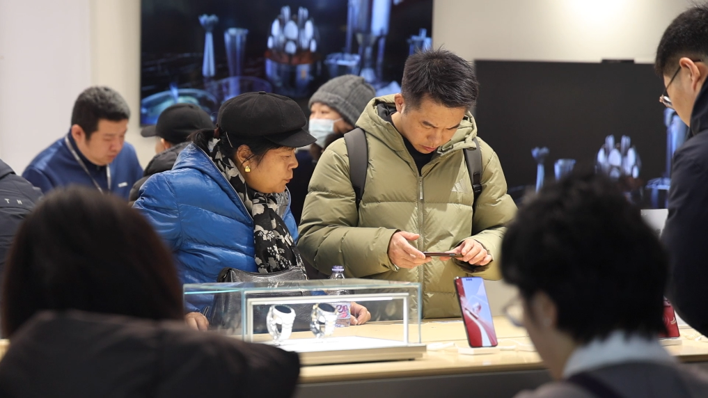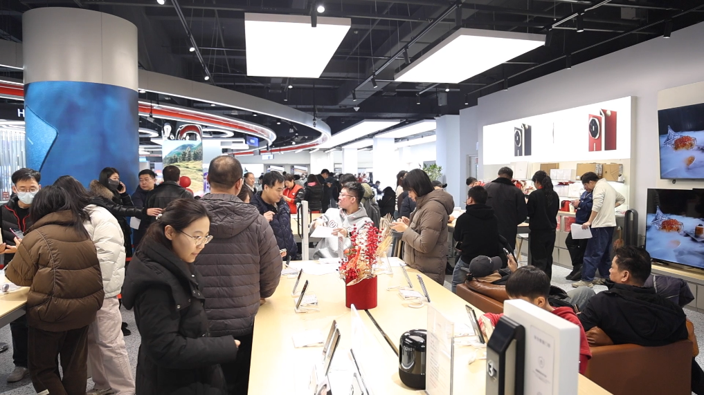 在天津市南开区的京东MALL超级体验店,店内红红火火的装饰品挂满每个角落,熙熙攘攘的顾客穿梭在各个展区。