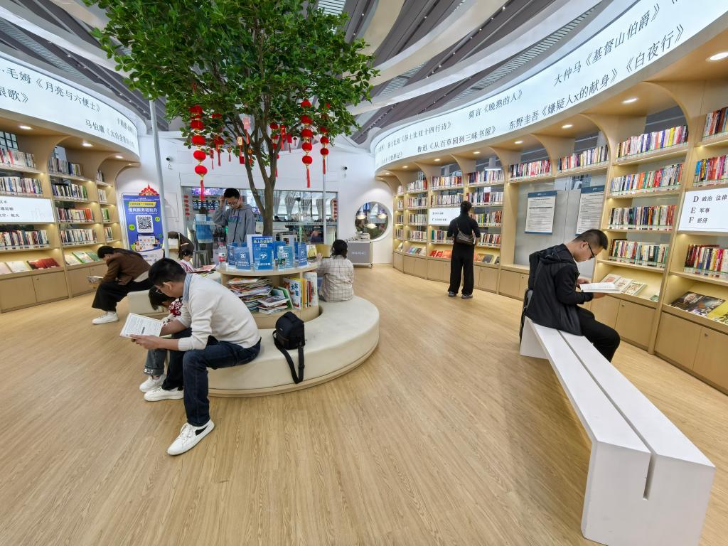 在广州白云站的“花城书房”,乘客正在看书。新华社发