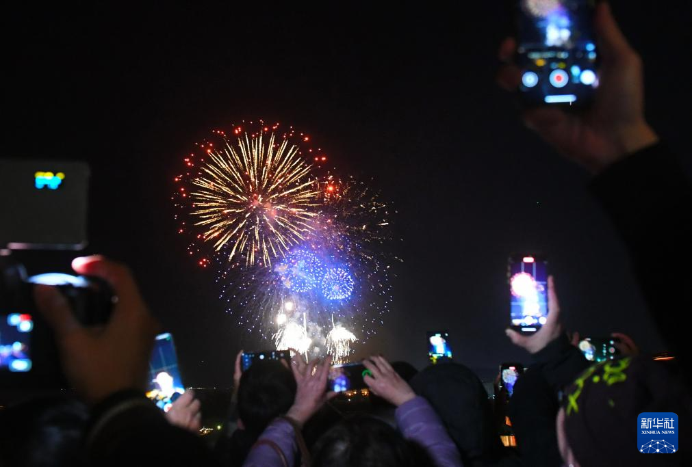 1月29日,市民在厦门思明区拍摄焰火。新华社记者 林善传 摄