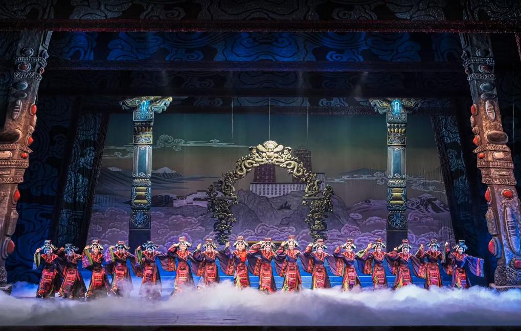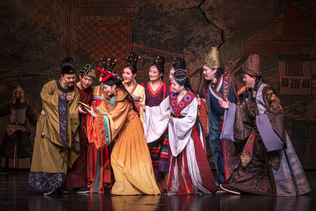 舞台上,《金城公主》以精湛的表演和细腻的情感刻画,将一段具有历史深邃感的唐蕃和盟故事娓娓道来。“我的主要目标是尽可能地学习民间藏戏,深入了解传统的演唱风格和发声方法,为创新表演方式打下基础。”41岁的藏戏演员仁青东智在剧中扮演唐中宗,他是西藏大学声乐系研究生,在校时学习意大利美声唱法,毕业后在藏戏中找到了自己的热爱。
