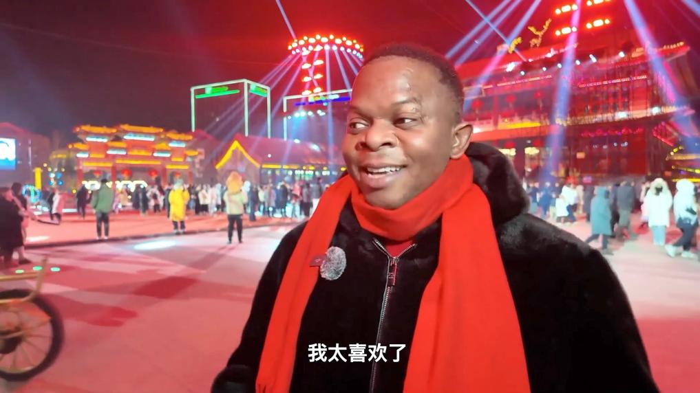 夜幕降临,华灯初上,位于河北省承德市双滦区的鼎盛文化产业园内热闹非凡。来自尼日利亚的迈克目前在承德一所学校担任外教。这个春节,他留在中国过年。