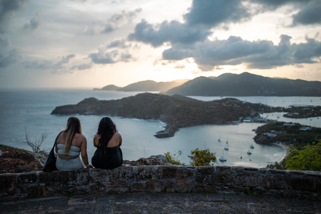 2024年5月29日,游客在安提瓜和巴布达雪莉高地欣赏日落。