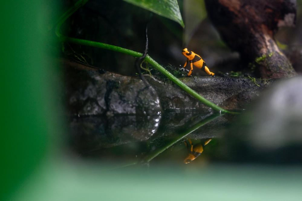 这是2024年10月24日在哥伦比亚卡利动物园拍摄的箭毒蛙。