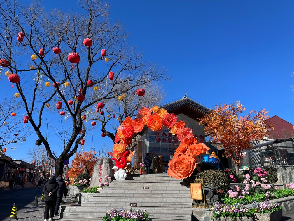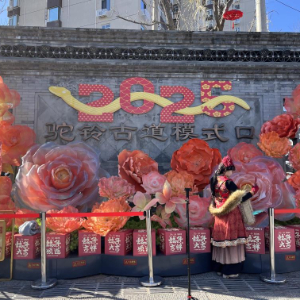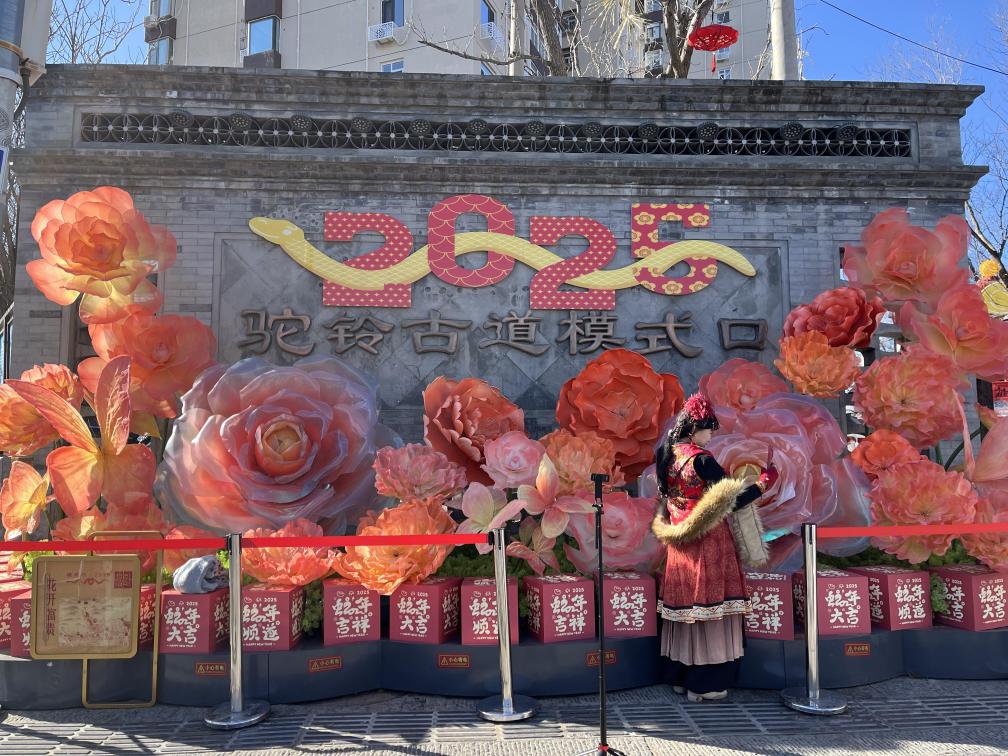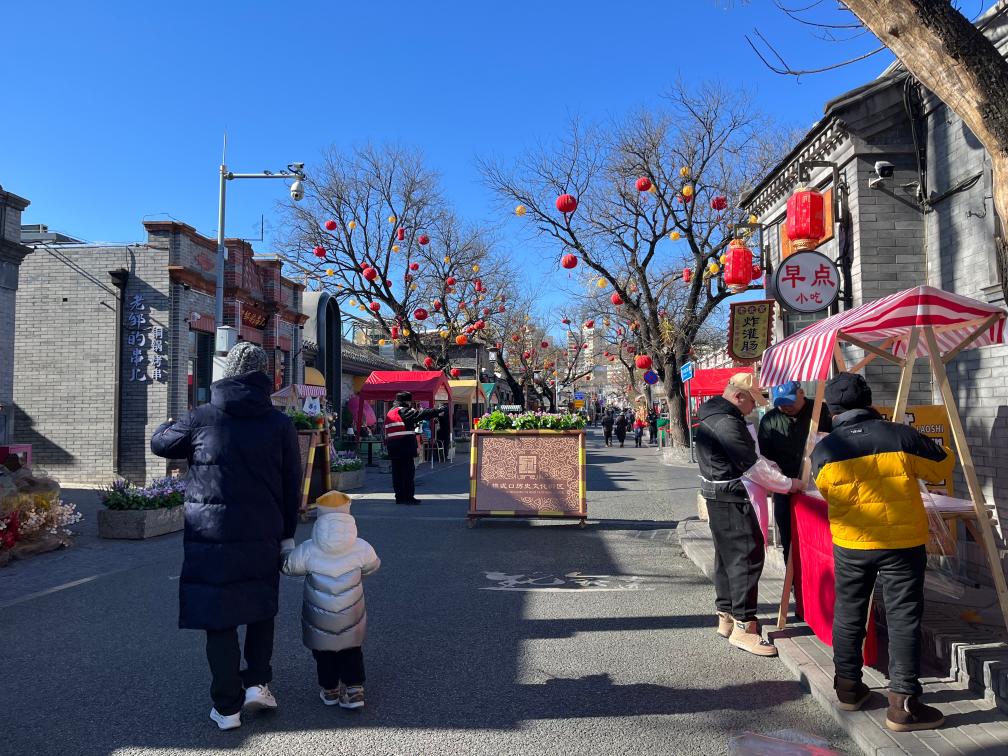 又到一年新春时。记者走进这条大街,道路两旁院落各具特色,胡同小巷井然有序,树木房屋被妆点上红灯笼和特色灯景。街道两旁满满当当排列着众多售卖地方小吃、年节特色产品、文创潮玩等商品的摊位,“狮舞新春”民俗演出、民俗快闪表演、“灵蛇瑞宝”集章打卡、打春展演等活动不断上演,塑造了集传统文化、现代科技、浓郁烟火气为一体的国风沉浸庙会。
