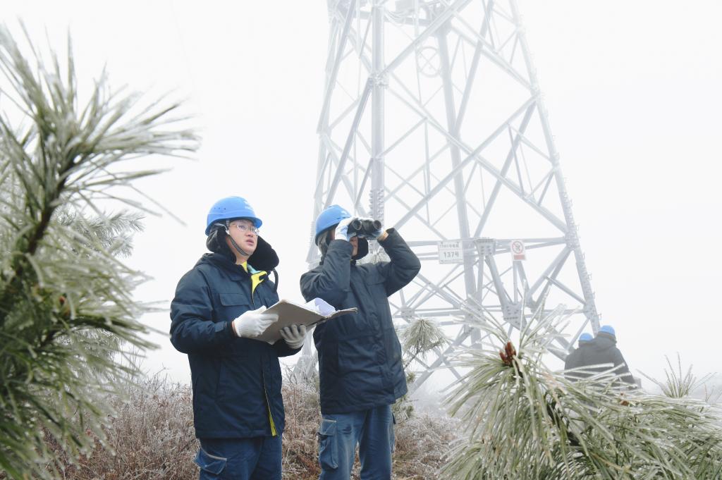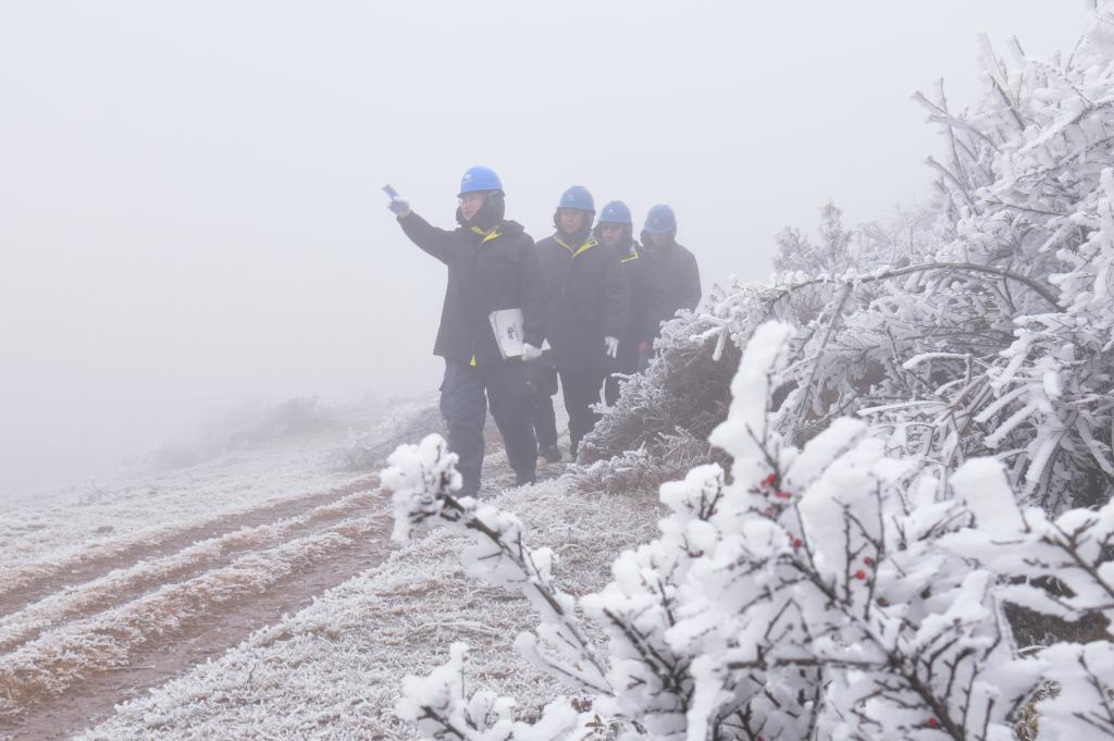 秦兴元(左一)与同事正在进行观冰作业。毕节供电局供图