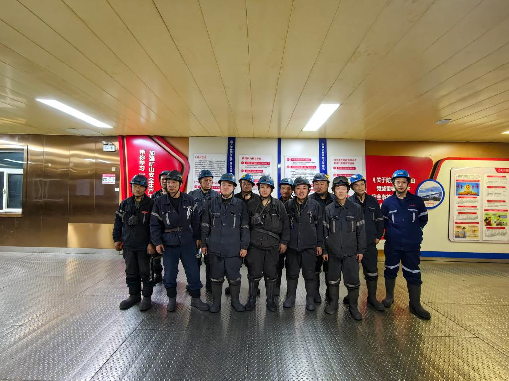 综采三队部分矿工出井后的合影。 新华社记者张磊 摄