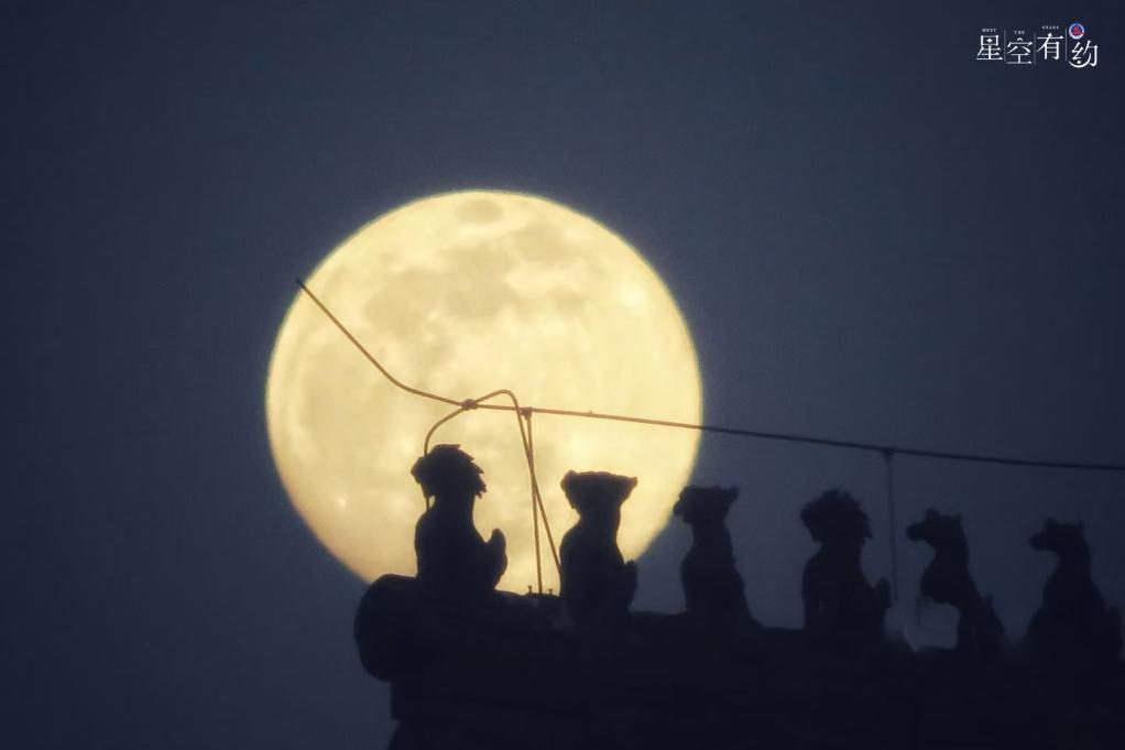 2022年2月15日在北京前门拍摄的元宵月。(王俊峰摄)