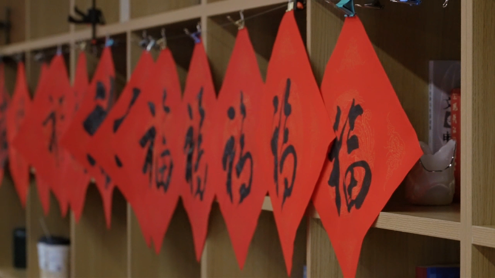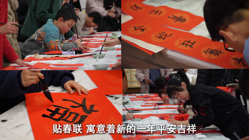 贴春联,寓意着新的一年平安吉祥。楹联对仗工整、平仄协调,是中国传统文化的生动体现。
