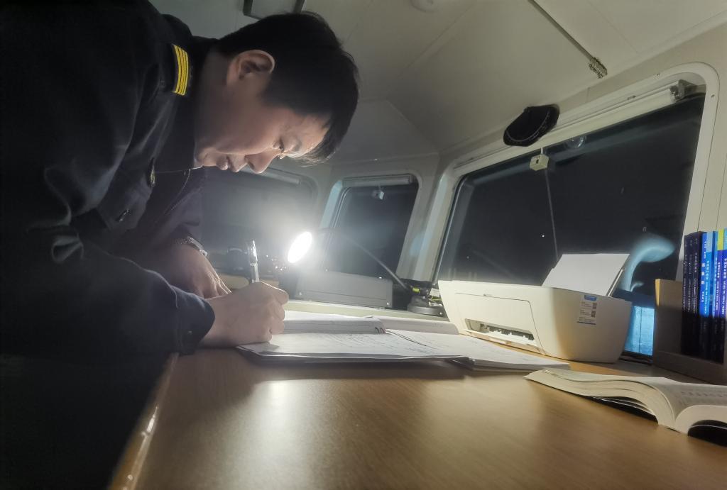 每次任务后,冷龙龙都要记录航海日志。新华社记者王凯 摄