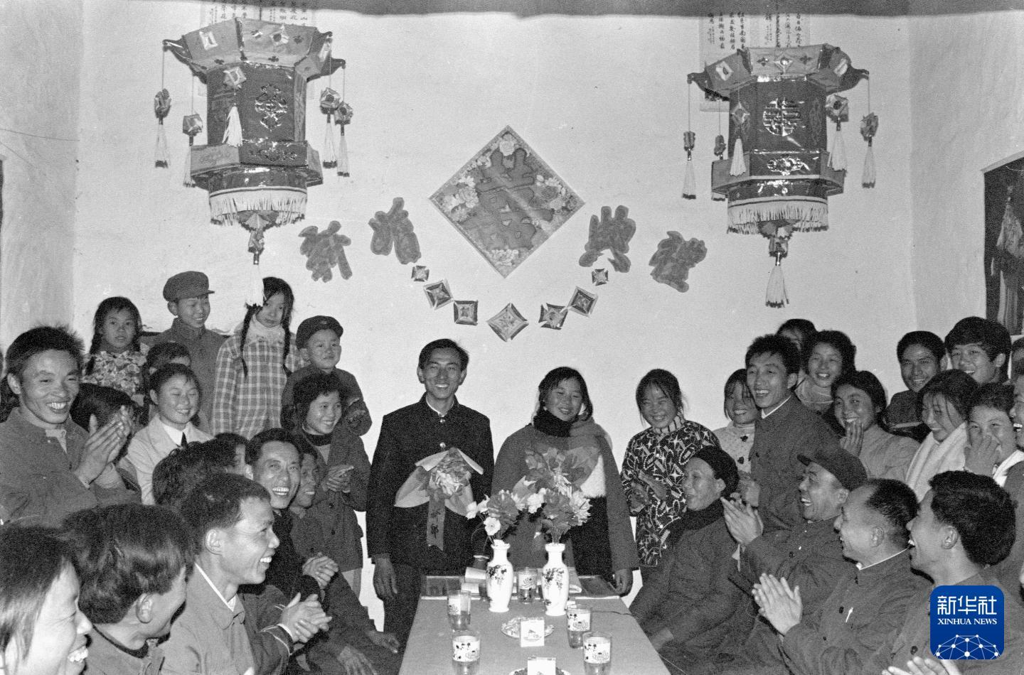 1982年新春佳节,湖北省蕲春县高新铺公社的一对年轻人举行了简单又热烈的婚礼。新华社记者 张申明 摄