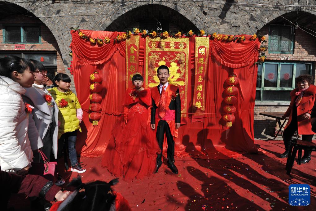 2016年春节前夕,在山西省孝义市下庄村,一对年轻人举行婚礼。新华社记者 詹彦 摄