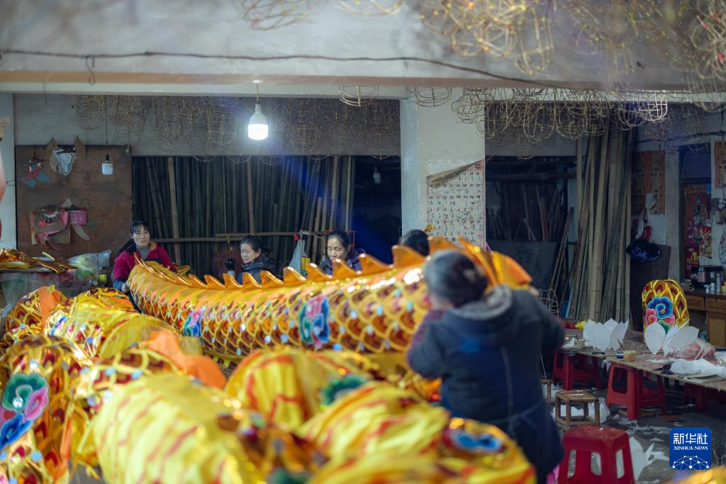 1月25日,在重庆市铜梁区龙城龙灯工艺厂,工人在制作铜梁龙。