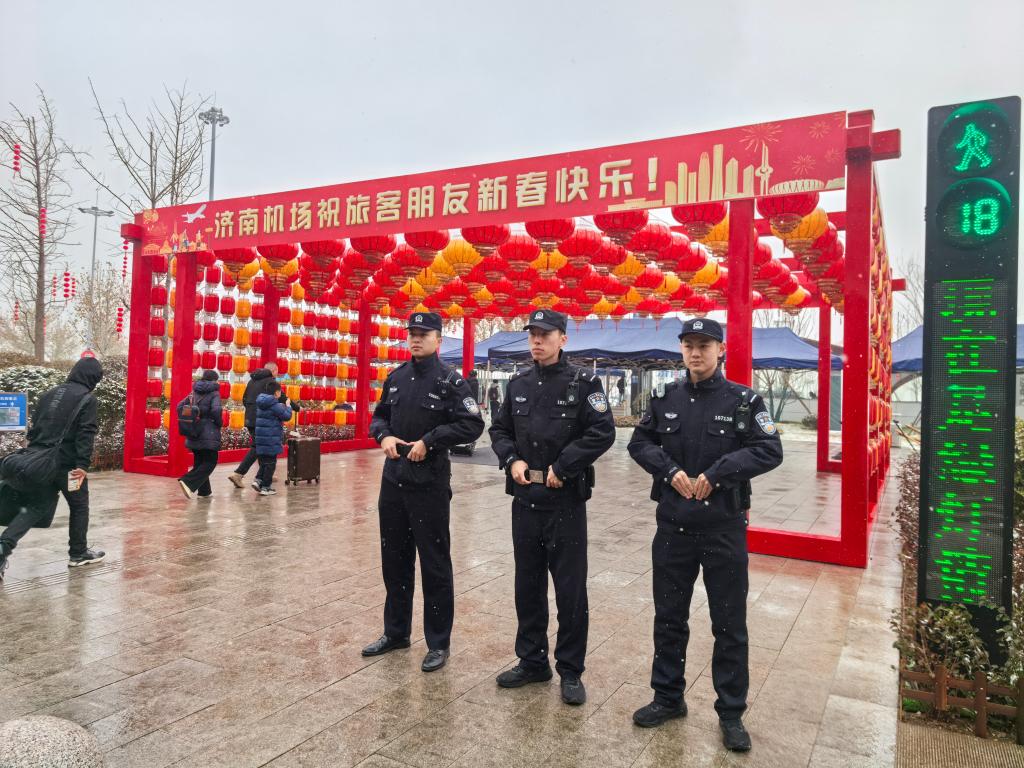 新华社济南2月1日电(记者王阳、张钟仁)在济南遥墙国际机场,安检区前的大红灯笼衬托着新春的喜庆,数以万计的旅客在这里踏上探亲、旅游、回家的行程。