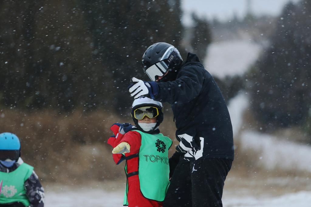 TOPKIDS途悦滑雪俱乐部教练指导孩子滑雪动作。(受访者供图)