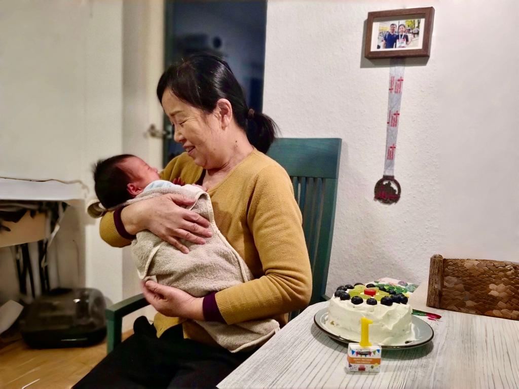 春节前夕,冯女士来到德国见刚出生的孙子,一起过年。受访者供图