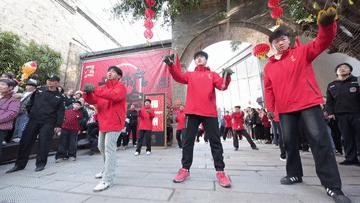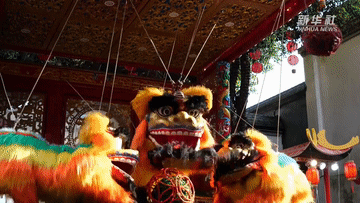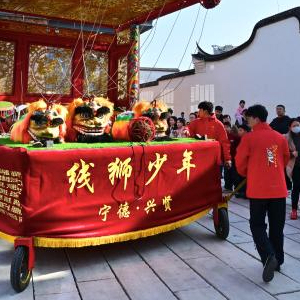 “兴贤少年线狮队”现身福州市上下杭历史文化街区