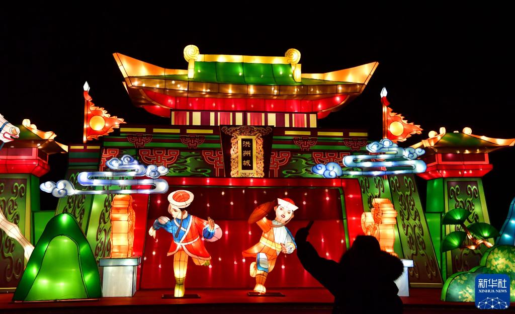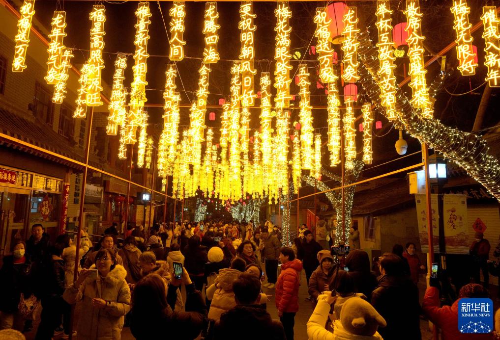 2024年2月11日,游客在北京厂甸庙会上赏灯。新华社记者 王毓国 摄