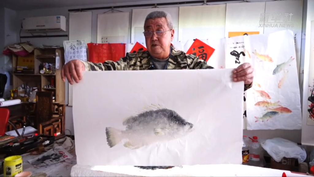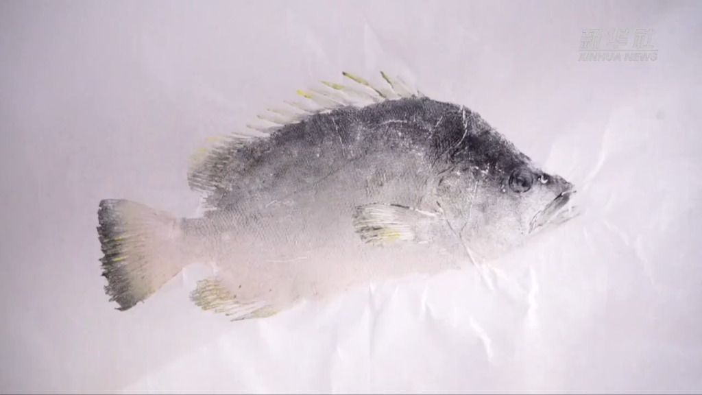 鱼拓,最早起源于宋代,由碑拓演变而来,是一种将真鱼的形象用墨汁或颜料活灵活现拓印到纸上的艺术。在山东烟台龙口市,民间艺术爱好者迟本年通过自行研习,掌握了这门艺术,并带动社区居民、学生参与。
