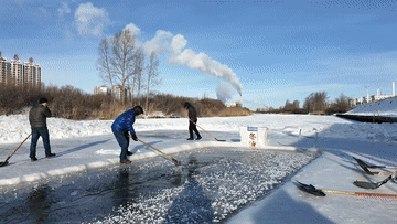 当冰面上的碎冰钩不上来时