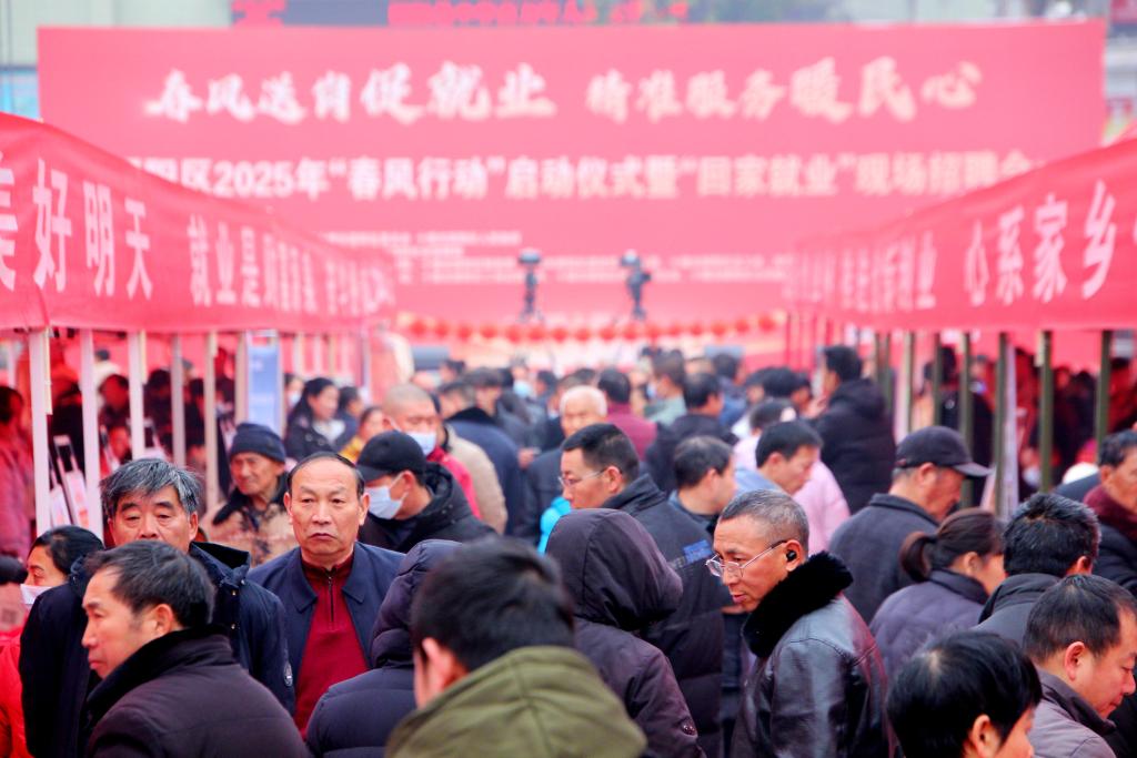 ■在江苏盱眙,“2025年春风行动”招聘会现场气氛热烈,人头攒动。