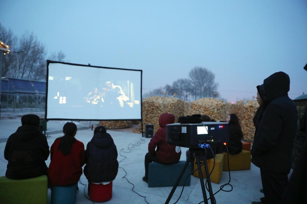 1月29日,红心村村民在广场观看电影。(科右前旗融媒体中心供图)