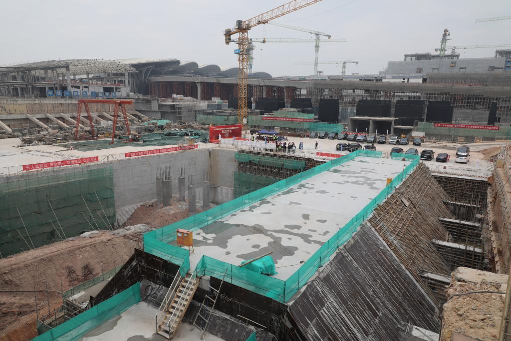 1月23日,白云机场三期扩建工程的综合交通中心的车站完成封顶。新华社记者田建川 摄