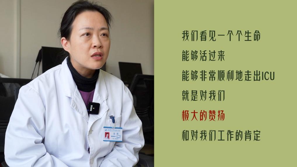 她说,“我们看见一个个生命能够活过来,能够非常顺利地走出ICU,就是对我们极大的赞扬和对我们工作的肯定。”