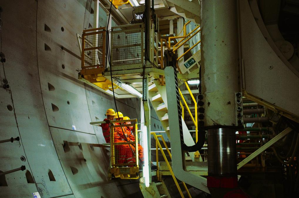 向隧道深处走去,正在作业的“山河号”盾构机出现在记者眼前。作为在建世界最大直径水下盾构隧道的掘进机械,开挖直径达到17.5米的“山河号”盾构机是世界在建最大直径泥水平衡盾构机。