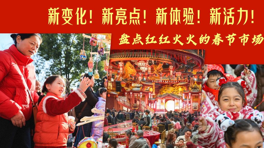 大数据显示,文旅市场人气旺盛、餐饮消费热气腾腾、以旧换新激发活力,全国各地通过积极举办各类活动,充分激发居民的春节消费热情,春节市场一片红红火火、年味儿十足。