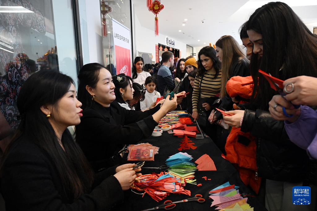 1月25日,在阿塞拜疆首都巴库,人们参加春节文化体验活动。新华社发(托菲克·巴巴耶夫摄)