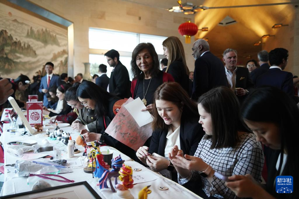 1月24日,在美国首都华盛顿举办的新春招待会上,来宾参加招待会的游园活动。新华社记者 吴晓凌 摄