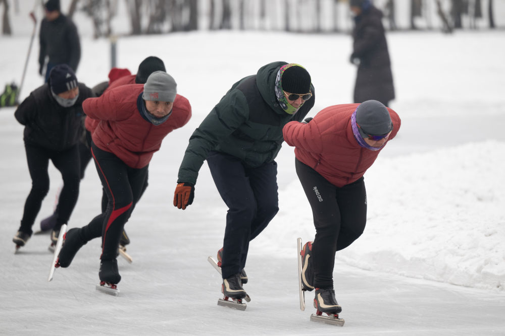 2025年1月7日,滑冰爱好者在哈尔滨丁香公园内滑冰。