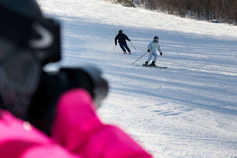 2025年1月14日,在亚布力阳光滑雪场,单宝源在游客滑雪时跟拍。