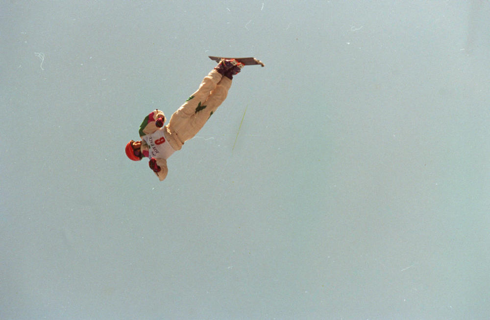 1996年2月7日,中国选手欧晓涛在第三届亚冬会自由式滑雪男子空中技巧比赛中获得冠军。新华社记者罗更前摄