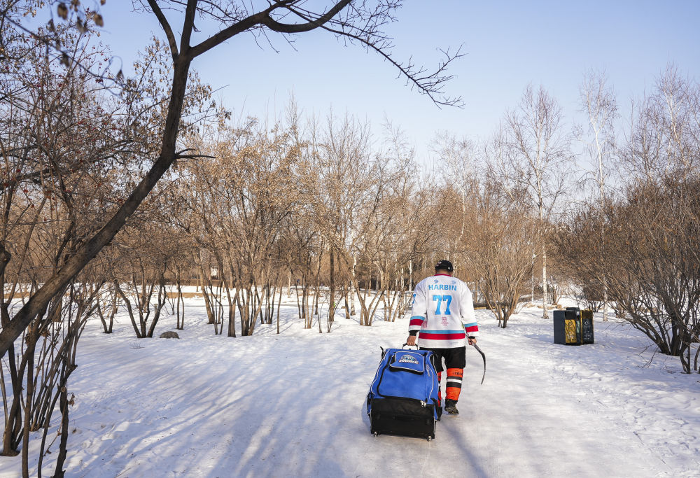 2025年1月18日,在哈尔滨丁香公园,孙作新走向冰场。