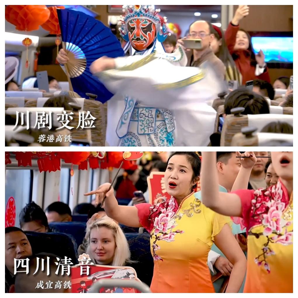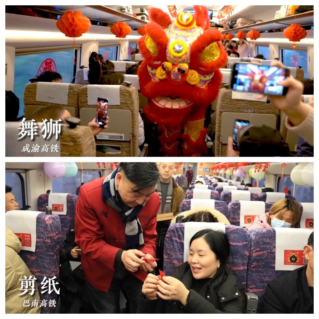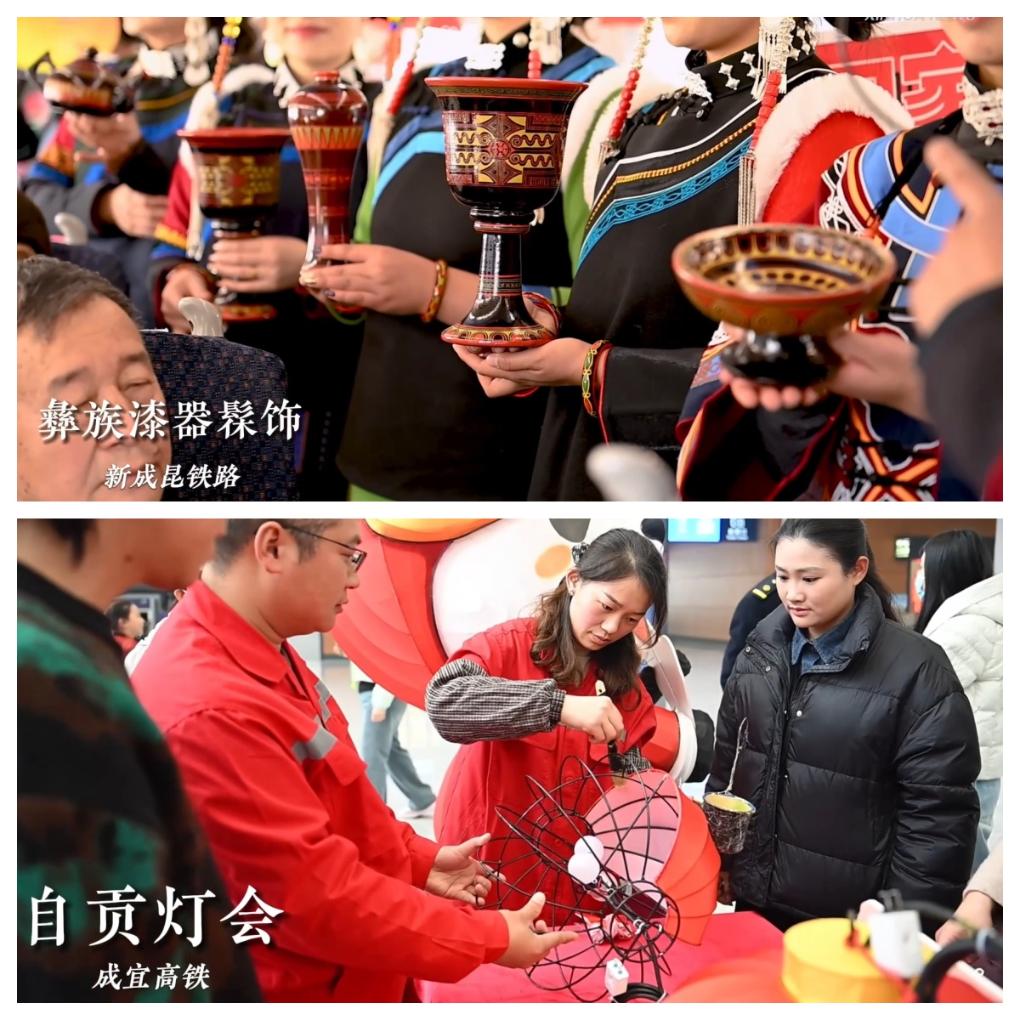2025年春运期间,中国铁路成都局集团有限公司联合川、渝、黔三地文旅部门,在川青铁路、巴南高铁、沪昆高铁、成渝高铁等多条高铁线路上开展了“高铁非遗文化节”活动,结合线路特点,将羌年、剪纸、舞狮、侗族大歌、川剧变脸、彝族漆器、四川漆器等多项非遗项目“搬”进车厢,让旅客们在出行途中乐享“流动文化盛宴”,这种“流动的文化课堂”让春运旅途真正“走心”又“走新”。